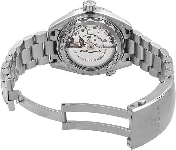 تأتي الساعة بهيكل ضخم وسوار من الإستانلس استيل الفضي عالي الجودة، يحيط بميناء يحتوي على أرقام (6، 9، 12) بارزة ومؤشرات وعقارب عريضة مطلية بمادة مضيئة لضمان رؤية مثالية في الظلام. كما تتميز الساعة بالإطار السيراميك الكحلي الدوار بجهة واحدة، وصمام هروب الهيليوم عند الساعة العاشرة، مع نافذة التاريخ عند الساعة الثالثة. التصميم العام للساعة يبرز التفاصيل المتقنة التي تشتهر بها أوميجا، مما يجعلها قطعة تخطف الأنظار من اللحظة الأولى.