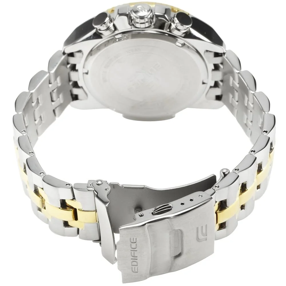 • ساعة كاسيو إيديفيس رجالي EF-558SG-1AV بلون أسود وذهبي وأستيك معدن لون فضي وذهبي.