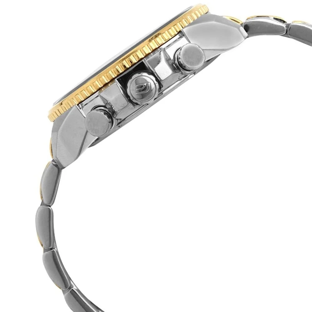 تُعد ساعة Casio Edifice EF-558SG-1AV الإصدار الأكثر رُقيًا وجاذبية في سلسلة إيديفيس “العملاقة”، حيث تأتي بتصميم “Two-Tone” الساحر الذي يمزج بين الفضة اللامعة والذهب البراق. صُمم هذا الموديل للرجل الذي يبحث عن ساعة ذات حضور “ملكي” وقوي في آن واحد، حيث تبرز اللمسات الذهبية على الإطار الخارجي، التاج، وأزرار التحكم، بالإضافة إلى تداخلها الأنيق داخل السوار المعدني، مما يجعلها القطعة المثالية للمناسبات الرسمية الراقية واللقاءات التي تتطلب مظهراً يعكس النجاح والثقة.