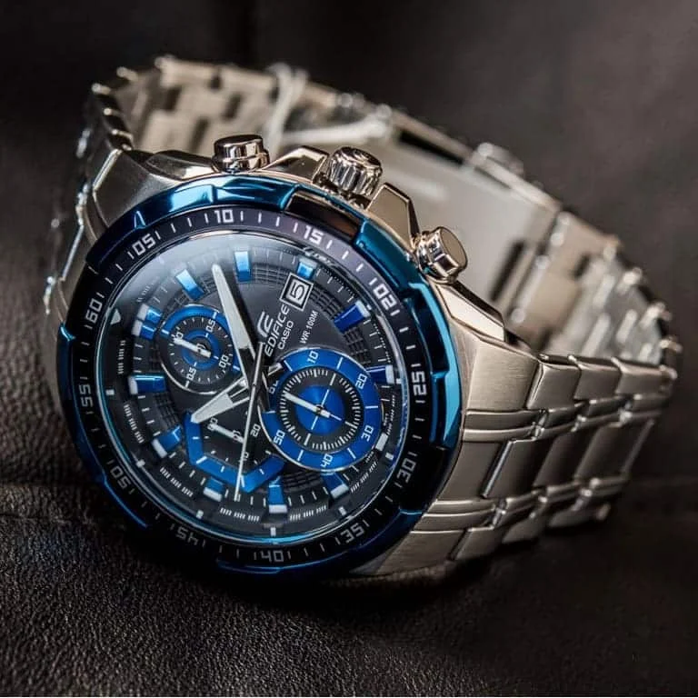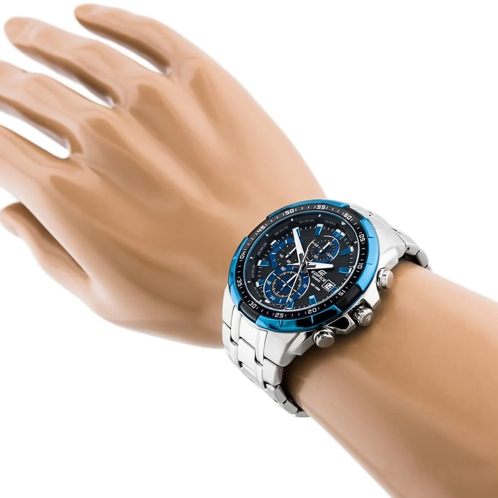 ساعة كاسيو إيديفيس EFR-539D-1A2VUEF: بريق المعدن الفضي مع لمسات المحيط الزرقاء