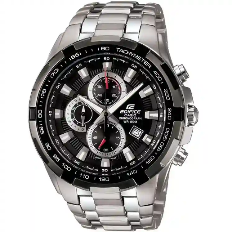 ساعة كاسيو إيديفيس رجالي EFR-539D-1A2VUEF بلون أسود وأستيك معدن لون فضي.
