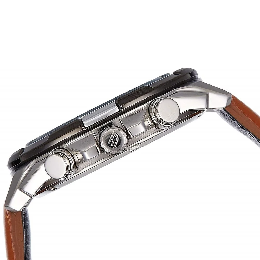 ساعة كاسيو إيديفيس رجالي EFR-539L-1BV بلون أسود وأستيك جلد لون بني.