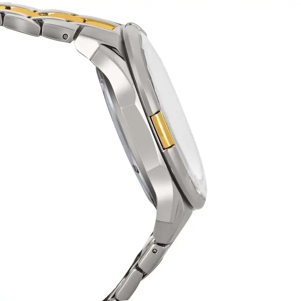 من الناحية التقنية، تعمل الساعة بحركة الكوارتز اليابانية الأصلية المعروفة بدقتها المتناهية، وتتضمن نافذة لعرض تاريخ اليوم عند موضع الساعة الرابعة. العقارب والمؤشرات الذهبية الكبيرة مطلية بمادة “Neobrite” المضيئة، لضمان رؤية ليلية واضحة جداً وتوهجاً يضفي جمالاً إضافياً في الظلام. بوزن 185 جرام، تجسد هذه الساعة متانة المعدن الياباني الثقيل، خاصة مع السوار المزود بقفل أمان مزدوج. ولأننا نثق في جودة هذا الموديل الاستثنائي، تأتي الساعة بضمان لمدة عام ونصف ضد عيوب الصناعة، لتكون رفيقك الذي يجمع بين الفخامة المطلقة والأداء الرياضي الجبار.