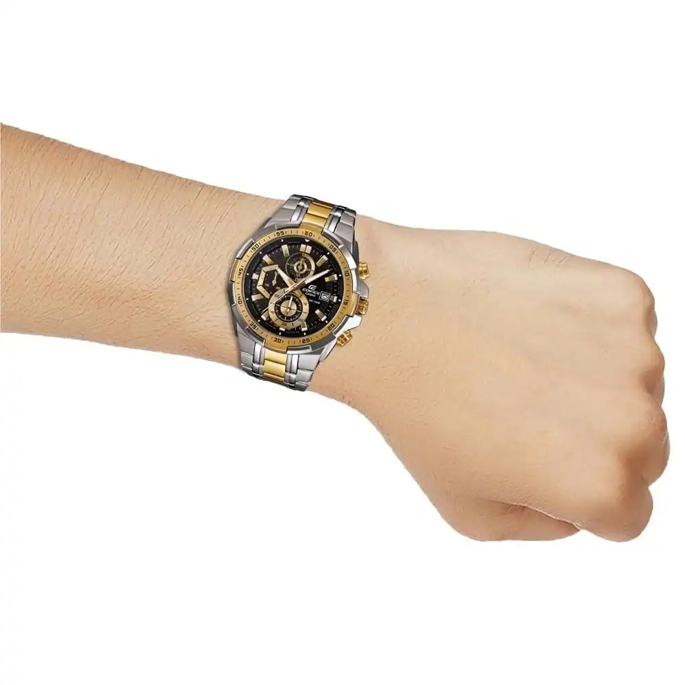 ساعة كاسيو إيديفيس رجالي EFR-539SG-1A بلون أسود وفضي وذهبي وأستيك معدن.